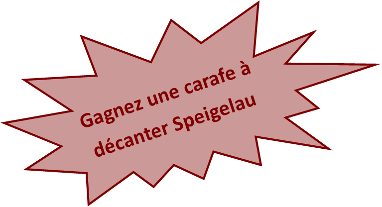 Ce concours se déroule du 1er au 23 décembre 2020. A la fin de celui-ci, un bulletin sera tiré au sort et le gagnant se verra attribuer une carafe à décanter en cristal de la prestigieuse marque Spiegelau. Il sera contacté par téléphone et/ou par courriel pour venir enlever son prix.
